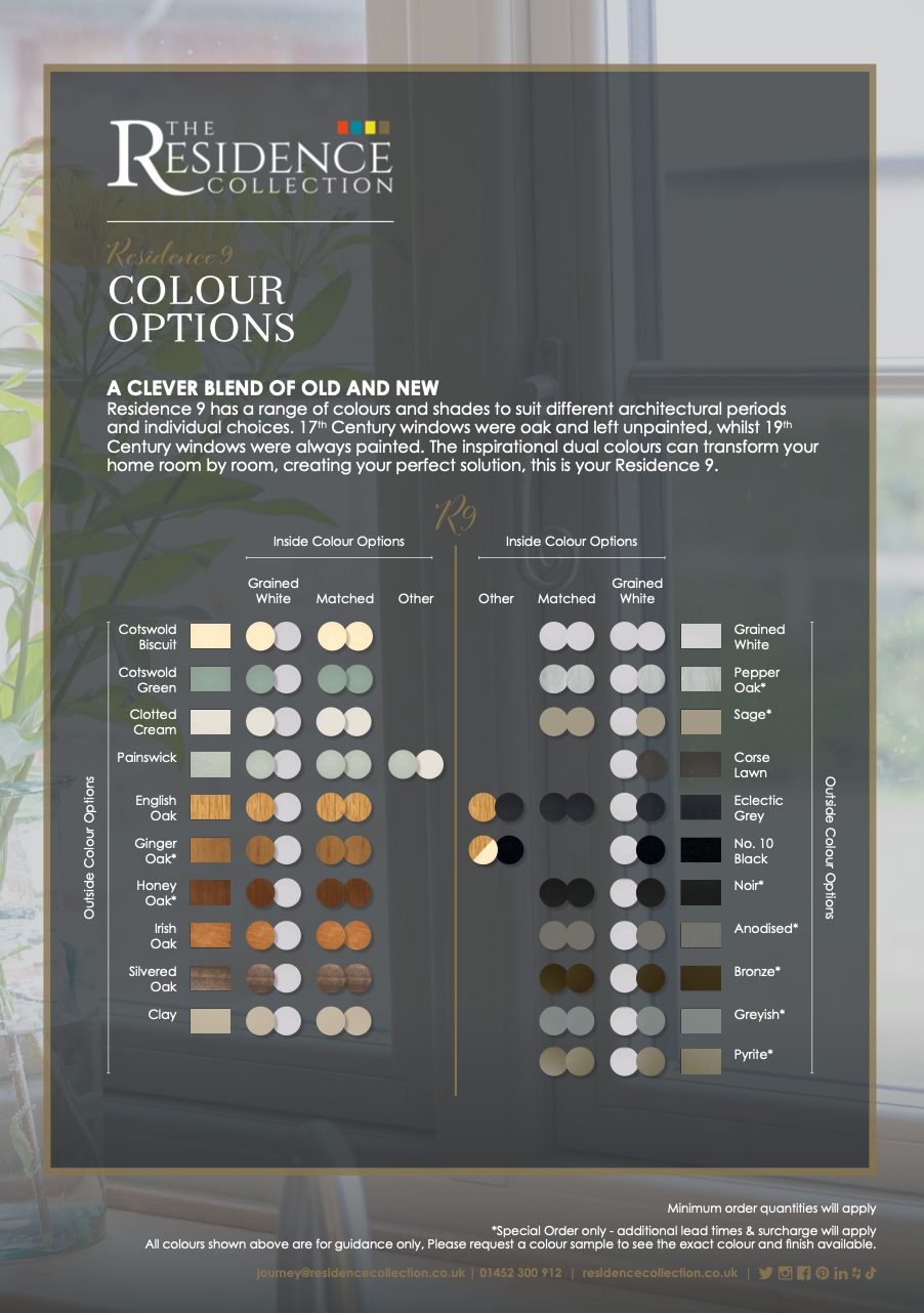 Residence 9 windows are available in a wide range of colours and finishes, from traditional woodgrain effects to more contemporary favourites.